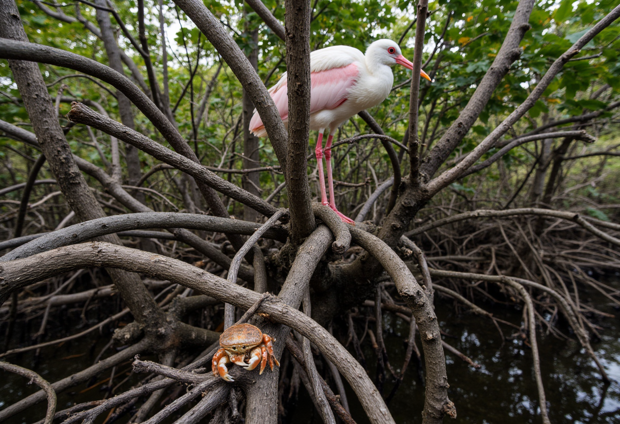 - Spoonbills, ibises, herons, and even the occasional eagle roost or nest in the canopy—making mangroves prime spots for birding and wildlife viewing.