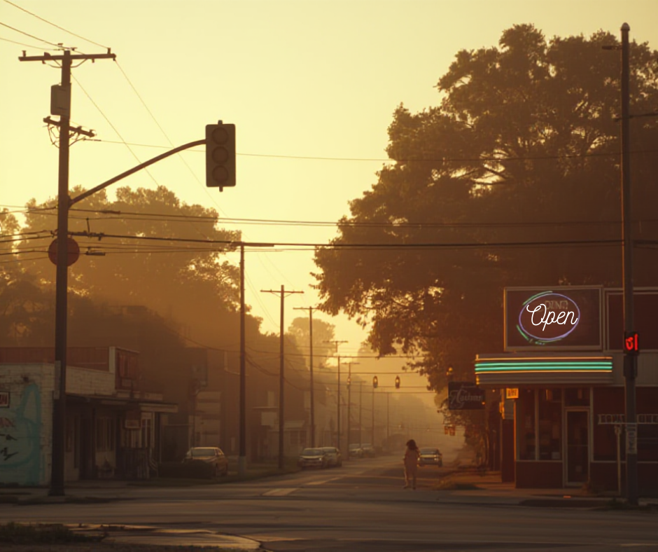 What they do have is a single stoplight, a diner that still smells like bacon grease and coffee grounds,