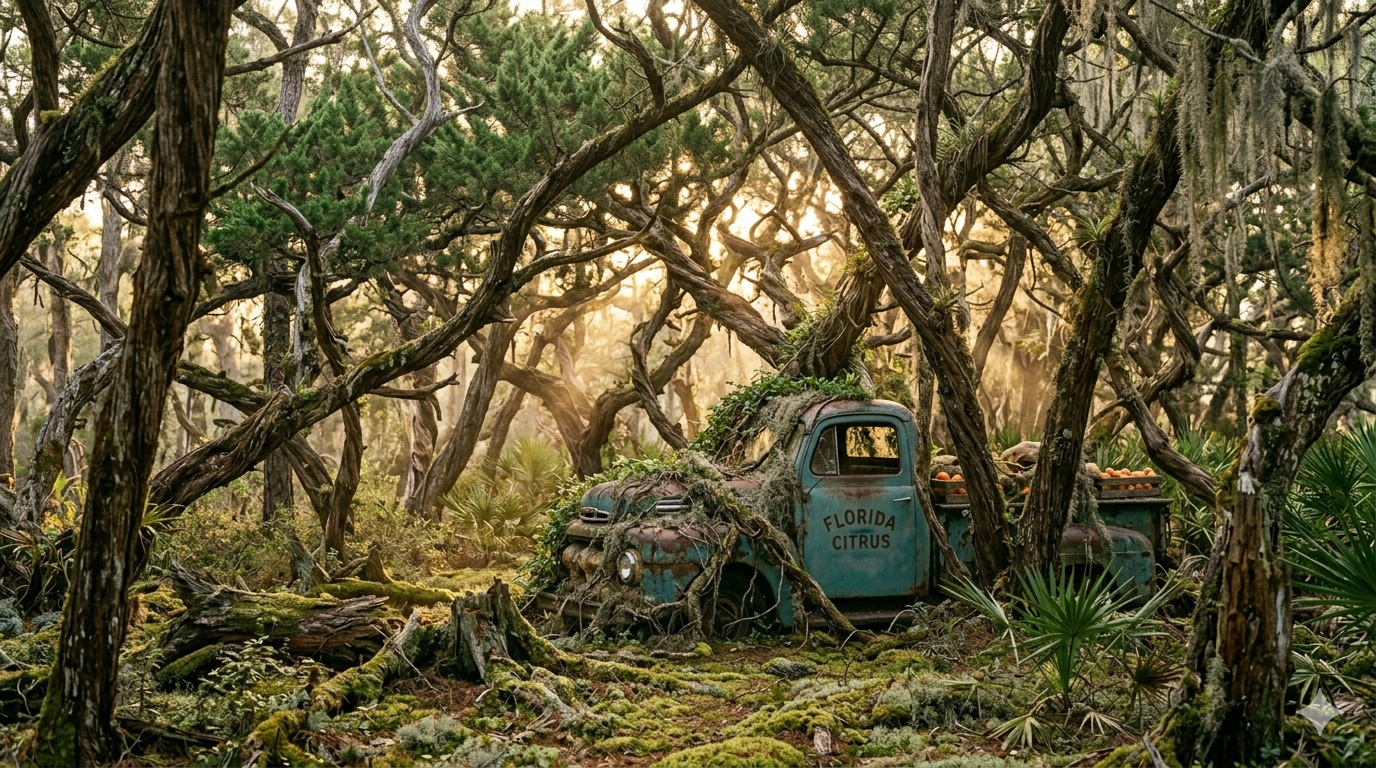 sprawling, humid wetlands, and manicured theme parks—fades away entirely.