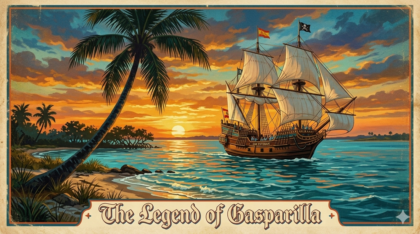 that anchor chain is still dragging Gaspar through the deep, guarding a treasure that no looter has ever been able to find.
