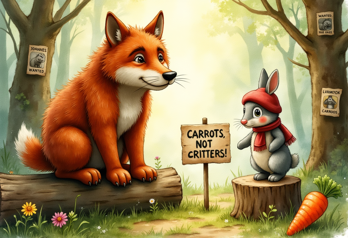 Not all forest dwellers understood the vegan lifestyle. The wolf and its friends had to explain their choices to confused creatures,